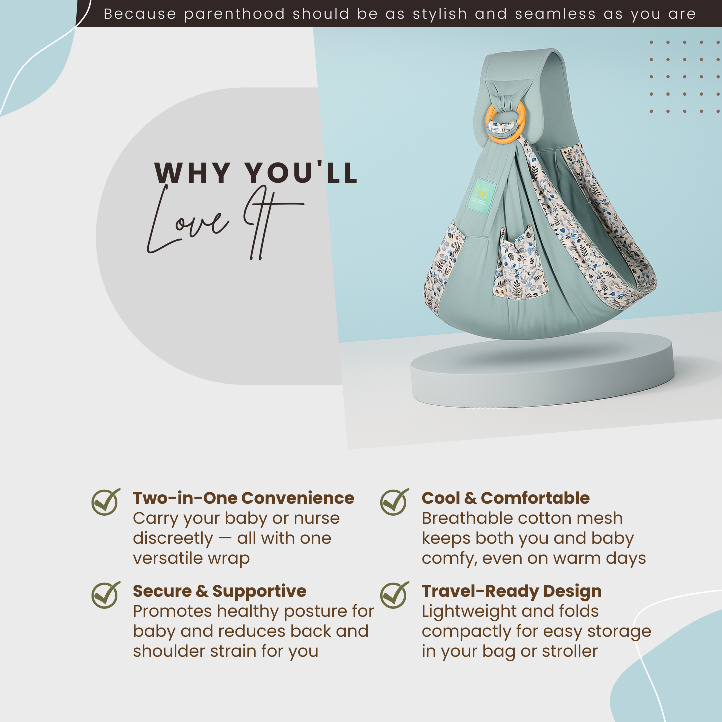 Use as a supportive baby carrier or a discreet nursing cover, making feeding and bonding easier anywhere.